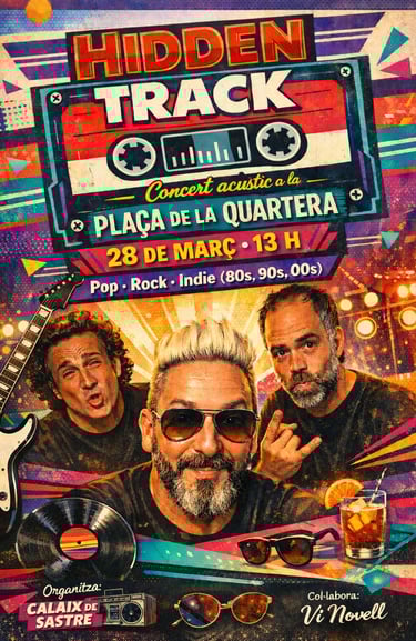 El dissabte 28 de març a les 13 h, la plaça s’omple de cançons que tots hem cantat alguna vegada. Hidden Track arriba al Calaix de Sastre amb un acústic carregat d’himnes del pop i rock dels 80 i 90 i d’aquells temes que continuen fent moure caps, records i vermuts.